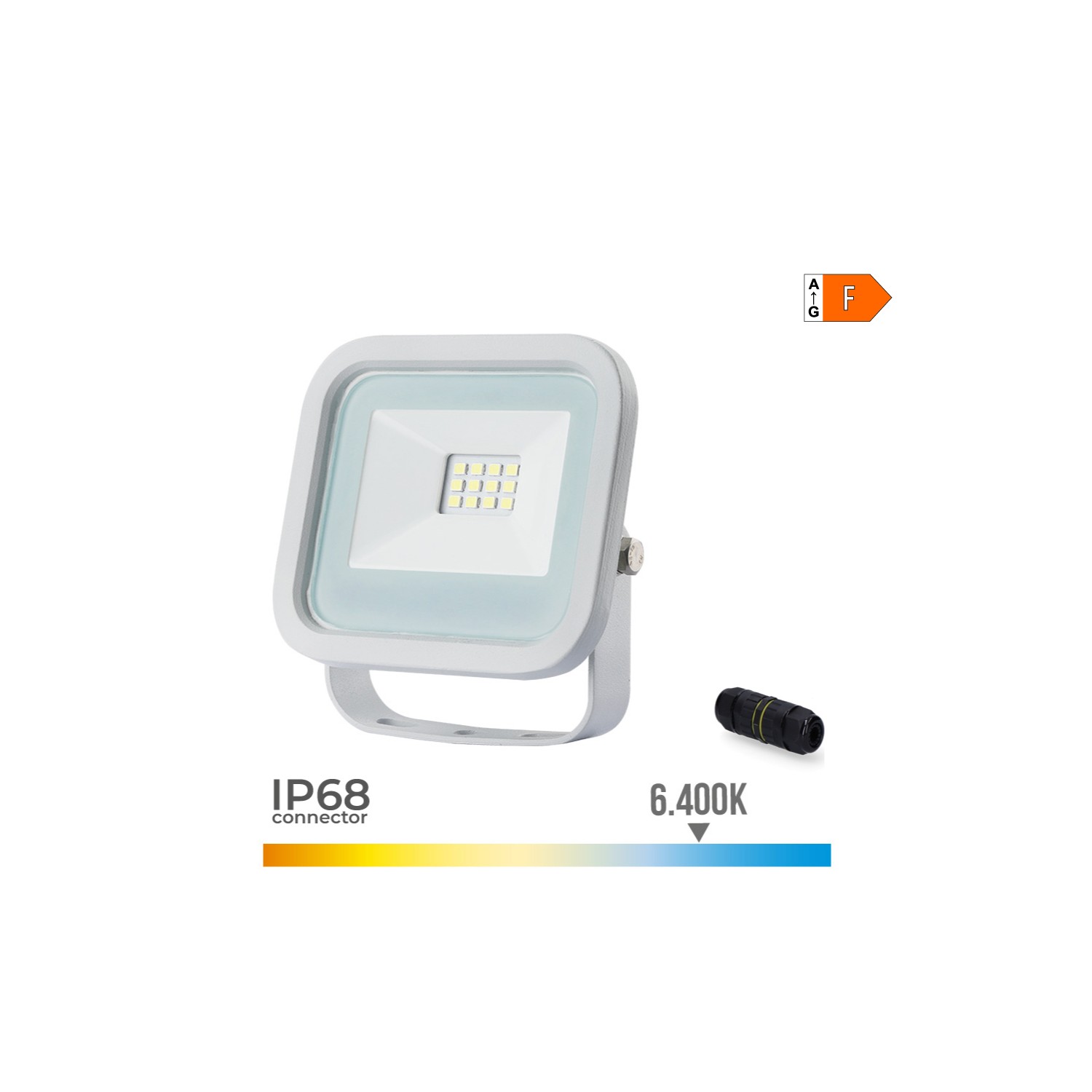 Foco proyector led blanco 10w 800lm 6400k luz fria. ip65 medidas: 9,2x2,7x8,1cm 25000h 220-240v clase energetica f. angulo de apertura: 120° edm