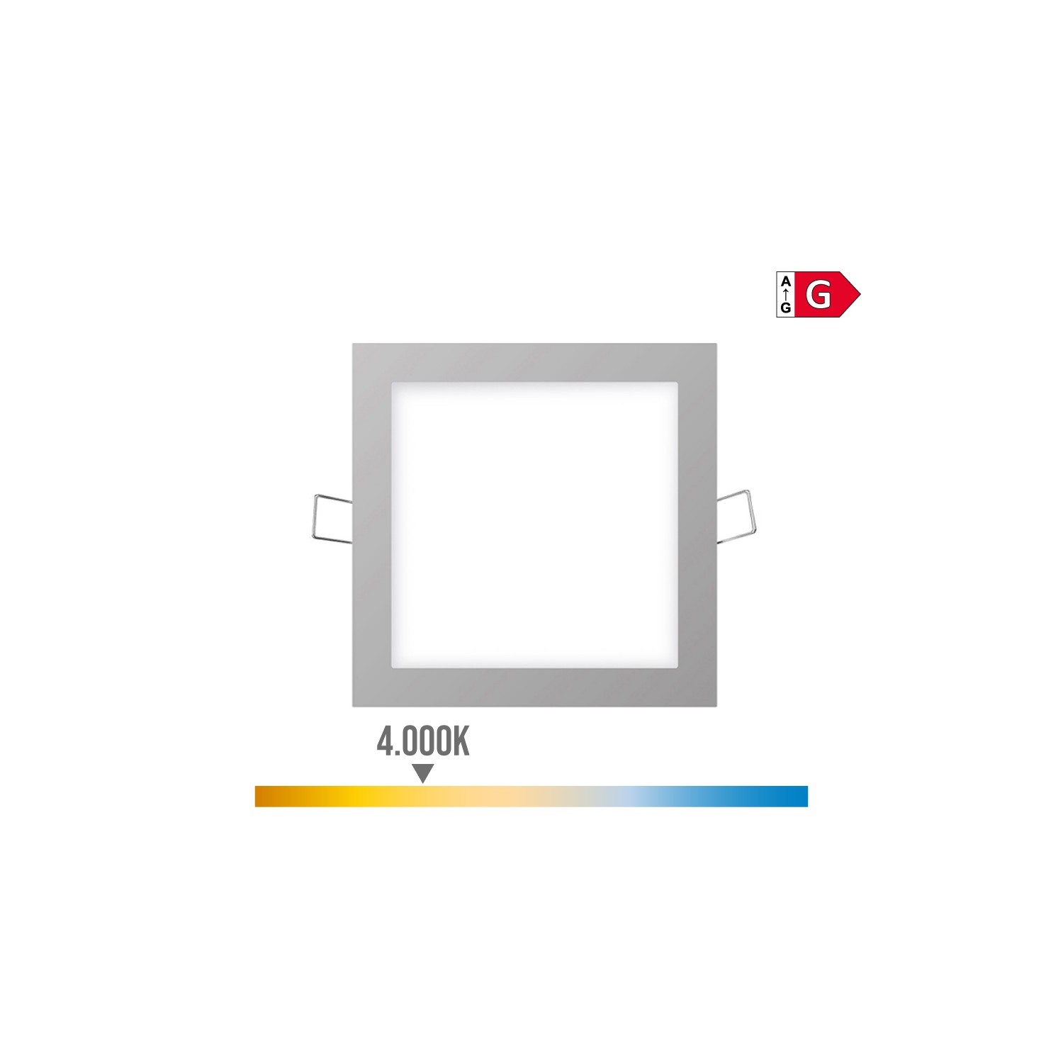 Mini downlight led empotrable cuadrado 6w 4000k luz dia 320lm. color cromo. angulo de apertura: 120°. ip20. clase energetica g.medidas: exterior: 11,7x11,7cm - enclavamiento: 11x11cm. 220-240v 25.000h edm