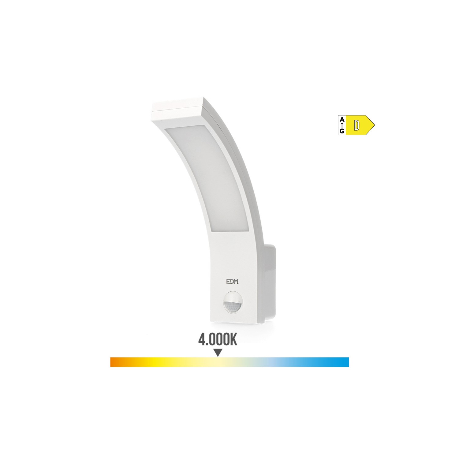 Aplique exterior led 10w 1654lm 4000k luz dia. con sensor. angulo sensor 140° 50 led. distancia max. sensor 9m ip54. medidas: 6,6x18,8x25cm (ancho/fondo/alto) 220-240v edm