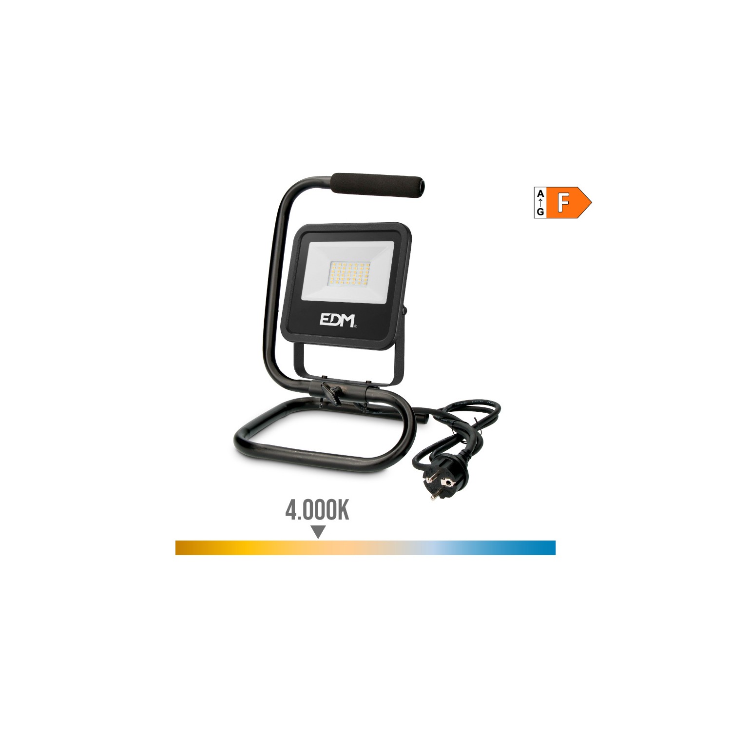 Foco proyector led con pie 30w 2370lm 4000k luz dia ip65 42 leds 22x21x32cm 25000h 220-240v 50hz clase f 120°. incluye clavija schuko 1,5m. black series edm