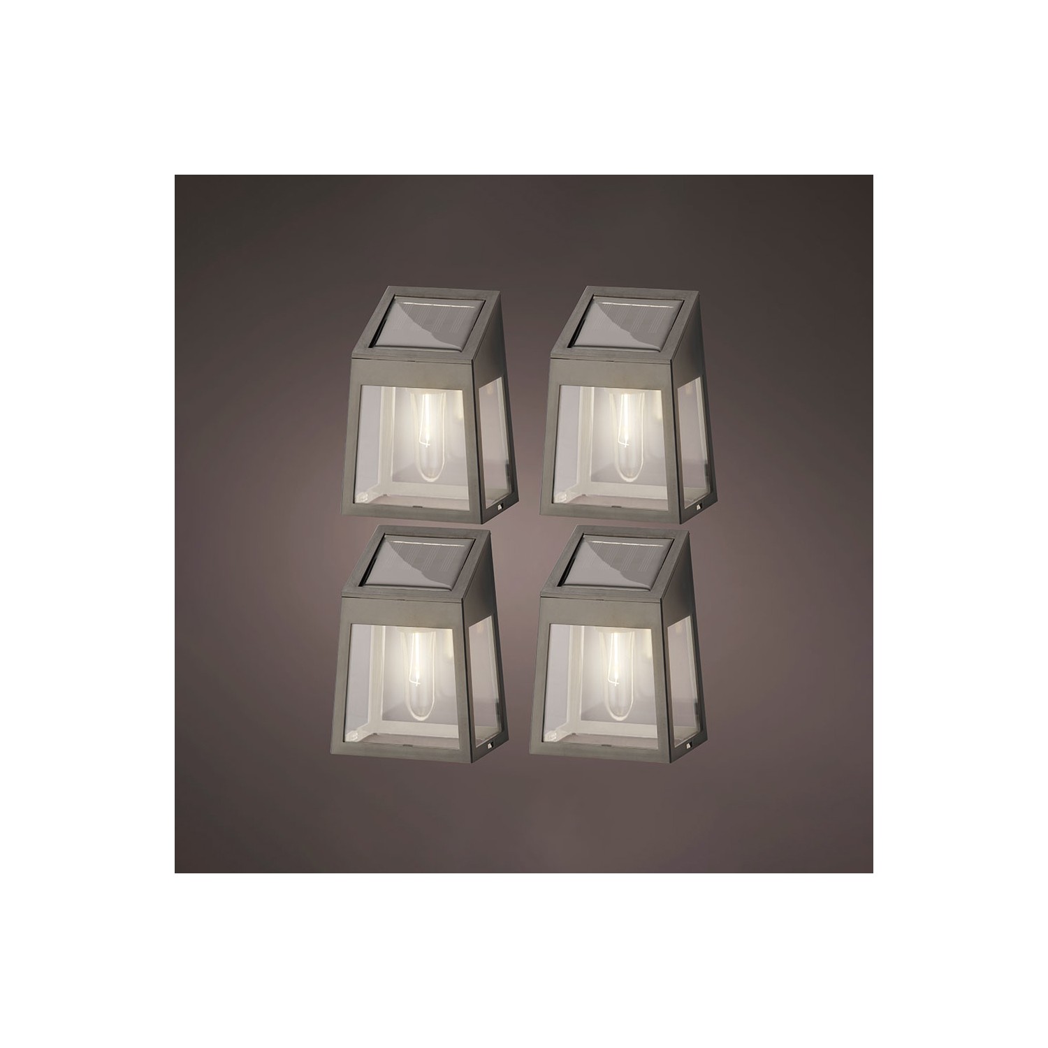 Set de 4 apliques de pared solar led 898174 aplique de pared solar led de color led blanco cálido panel solar policristalino y interruptor 5 lm 1,2v medidas: 9,5x6,5x13cm