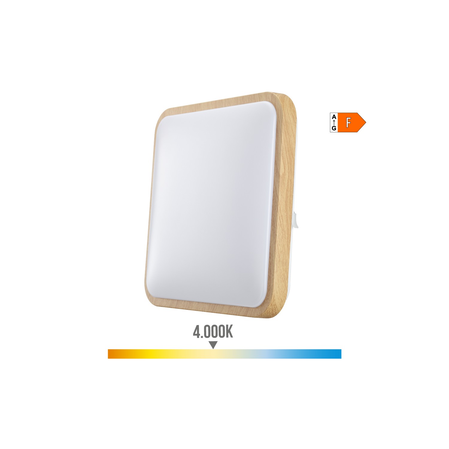 Aplique superficie cuadrado led 18 w 4000 k 1820 lm efecto madera. fabricado en plástico y metal, 25000 h 220-240 v 50 hz clase f, pf: 0.7, angulo apertura 120° cri 80, dimensiones: 33 x 5 x 33 cm