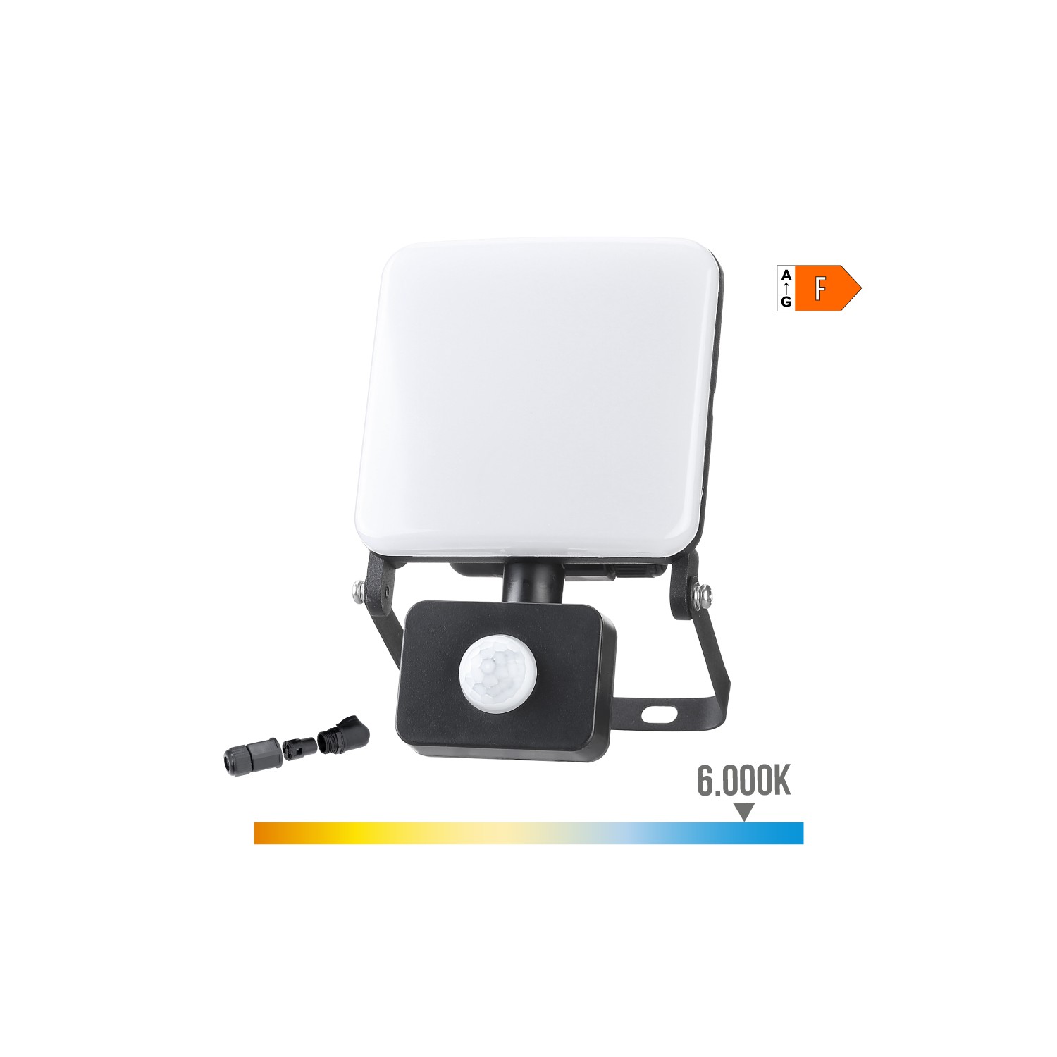 Foco proyector frameless led 50w 4100lm 6000k luz fria con sensoredm. ip44 incluye conector. fabricado en aluminio y plástico, 25000h 220-240v 50hz, pf 0,9, angulo apertura 120º, cri 80, dimensiones: 16,8x16xcm