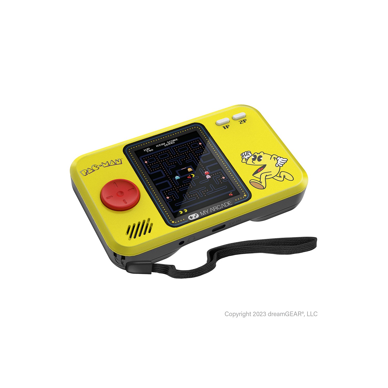 Pocket player pro pac-man portable gaming system título con licencia oficial pantalla 2,75" de alta resolución a todo color. altavoz incorporado con control de volumen. puerto de auriculares de 3,5 mm. brillo de pantalla ajustable. alimentado por 4 pilas aa (no incluidas) o un cable usb-c (no incluido). diseño ergonómico. incluye guía de usuario y lanyard