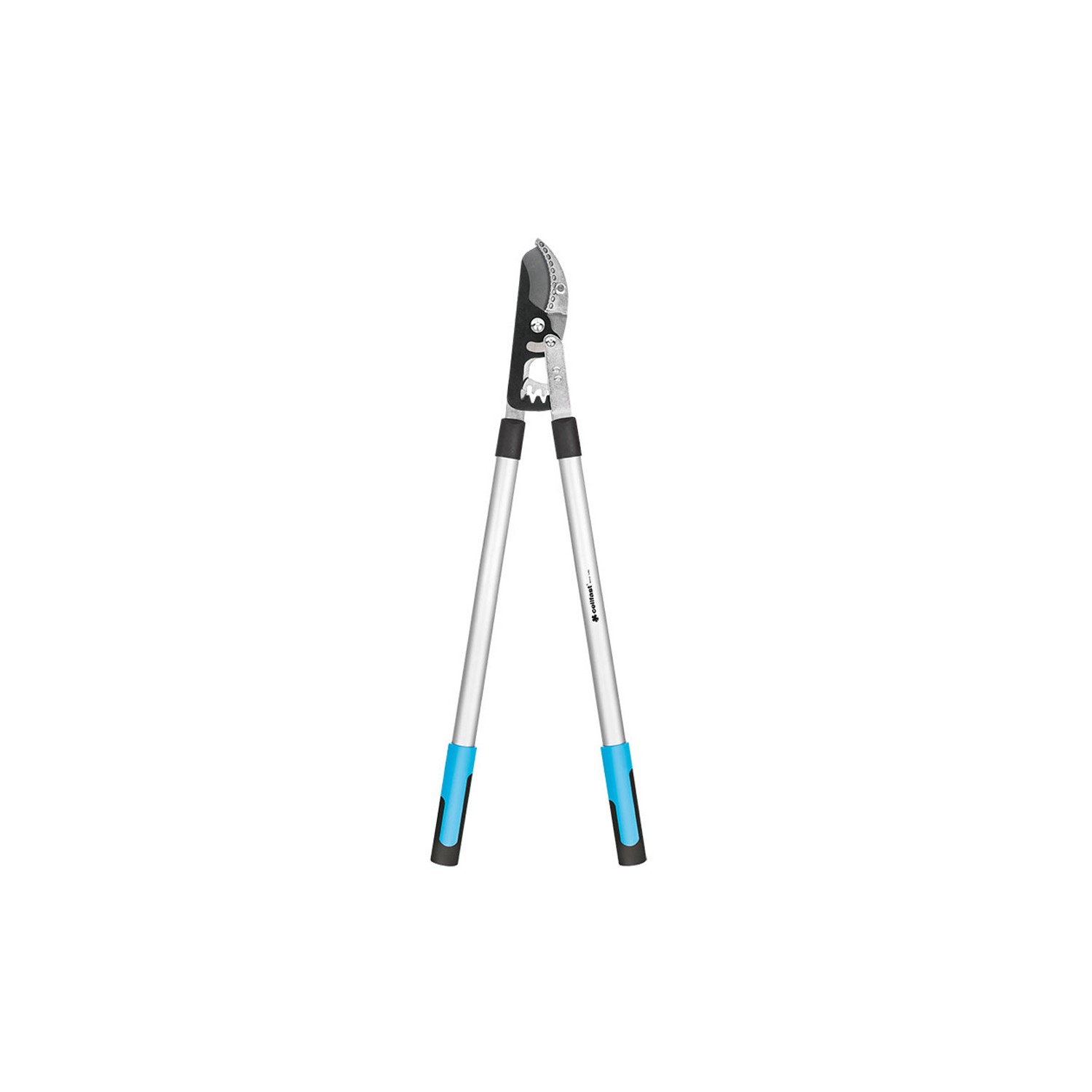 Tijera en forma de yunque para cortar ramas secas. hoja en acero templado que es capaz de cortar ramas de hasta 45 mm. sistema de engranajes que potencial la fuerza del corte y mangos acabados en safe touch, sistema que asegura un confortable y seguro agarre
