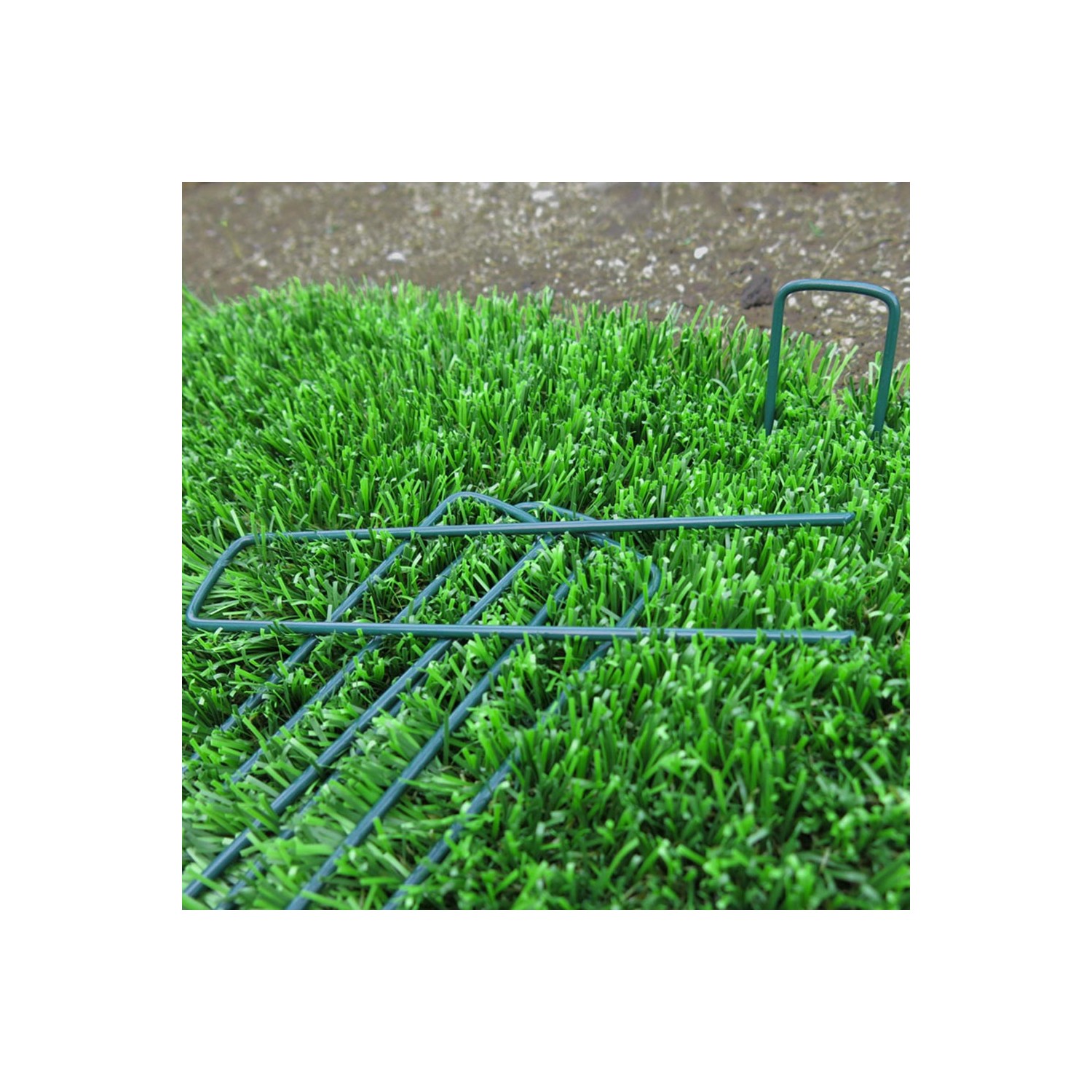 Grapa metalica 17x3,5cm color verde. (bolsa de 10 unid.) grapas metalicas para la sujecion al suelo de mallas antihierbas, geotextiles, cespedes artificiales, etc.faura