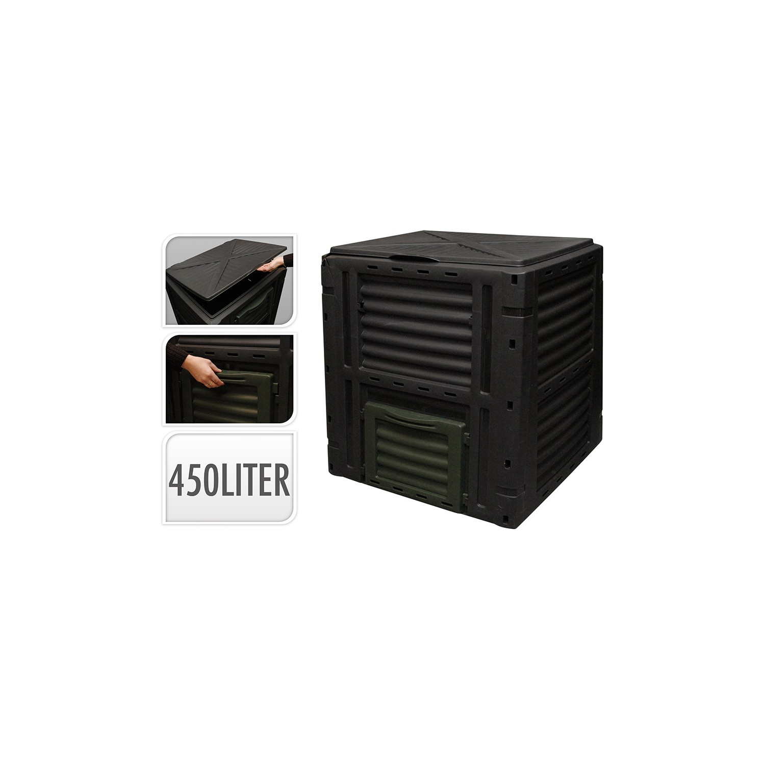 Caja de compostaje 450 l color negro 80x80x81cm (ancho/fondo/alto) material: poliporpileno. peso: 6,5kg. ideal para huertos o jardines. progarden