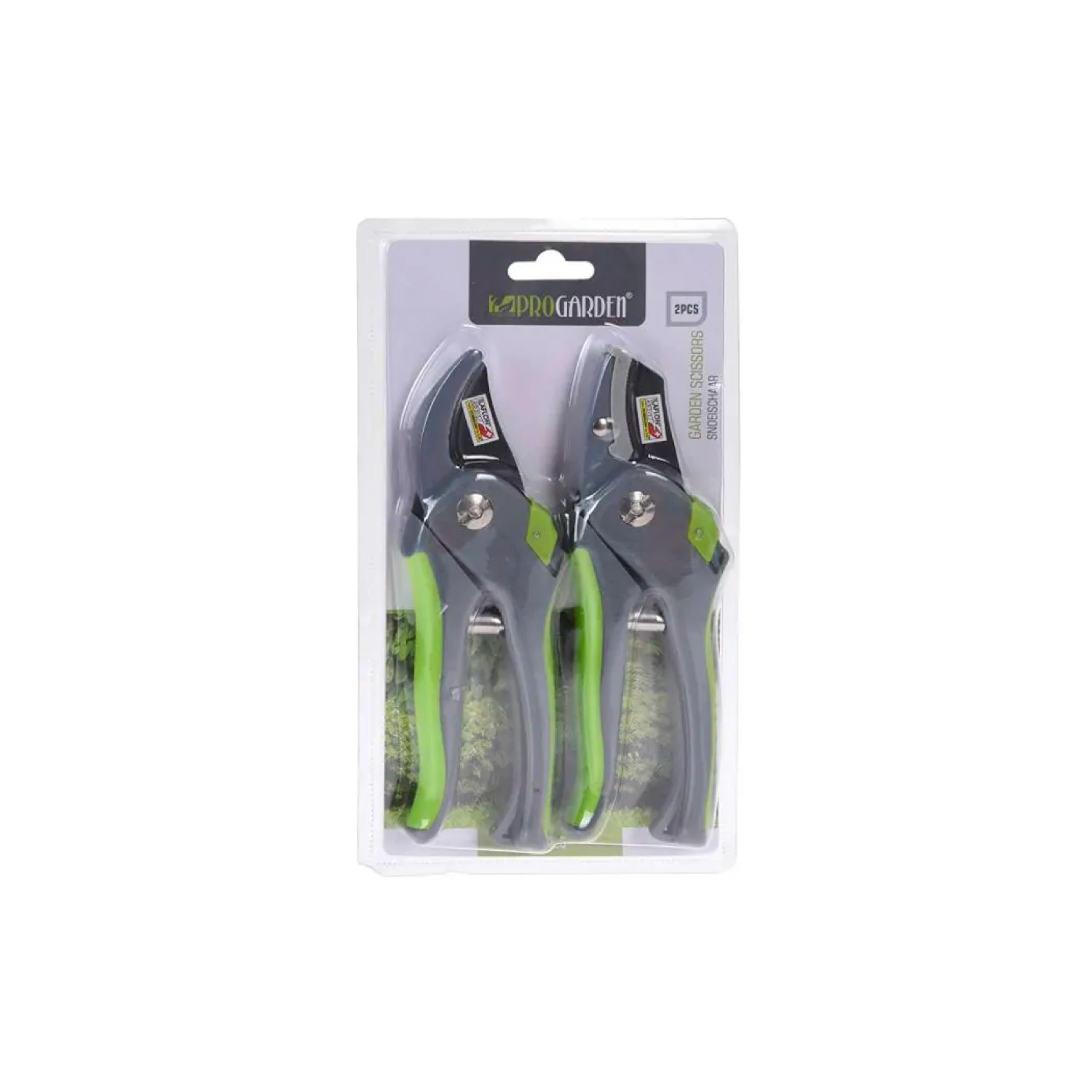 Pack 2 tijeras de poda con mango de plastico verde progarden