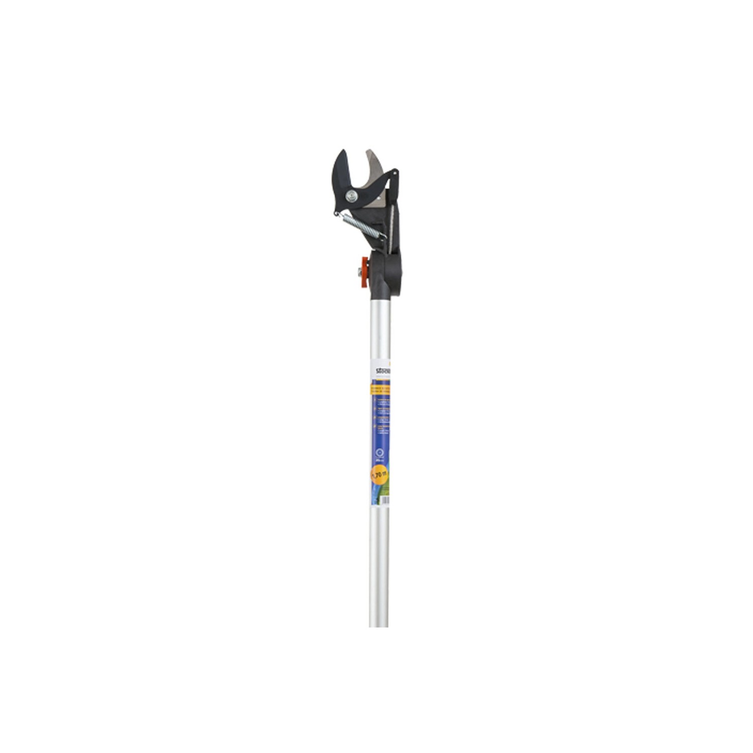 Tijera de mango largo fija 170cm. stocker. ¡adiós fatiga! la tijera con mango telescópico es perfecta para podar árboles de grandes dimensiones como el olivo. permite podar también las ramas en 3 metros de altura con diámetro de 35 mm. la poda puede ser hecha en toda seguridad desde el suelo, sin escalera. la cabeza de corte ajustable a 180° y que se puede bloquear en cualquier punto ofrece la máxima flexibilidad. cabeza de corte ajustable a 180° cierre seguro de la hoja. longitud: 170cm - peso: 903g