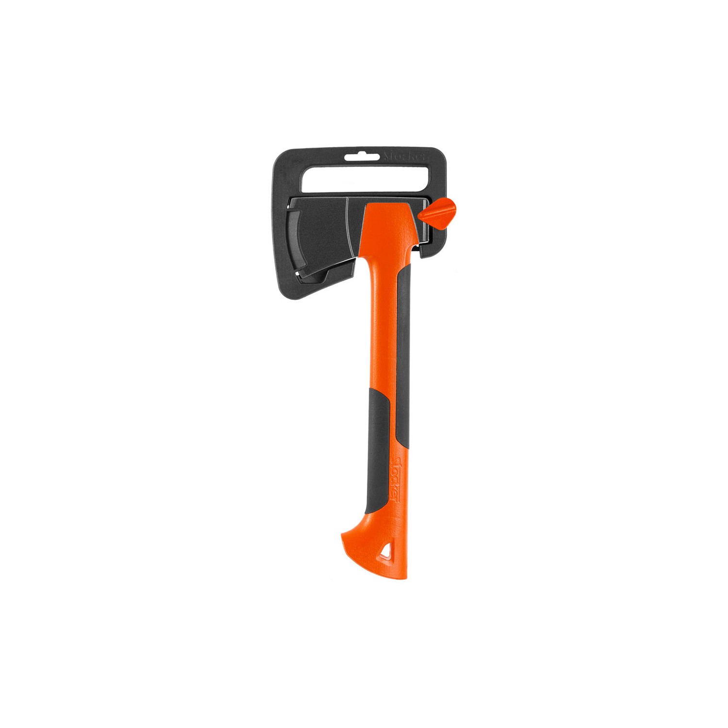 Hacha de corte 700g. la cabeza de 500g está hecha de acero al carbono de muy alta calidad con revestimiento antifricción. el mango es ergonómico, gracias a la forma y a los insertos antideslizantes, y ligero: su estructura está vacía por dentro para reducir las vibraciones causadas por el impacto con la madera. la parte posterior de la cabeza de corte también se puede utilizar como práctico martillo. está equipada con presilla, para ser transportada cómodamente y en total seguiridad. - peso: 700g - peso de la cabeza: 500g - longitud: 35cm. stocker