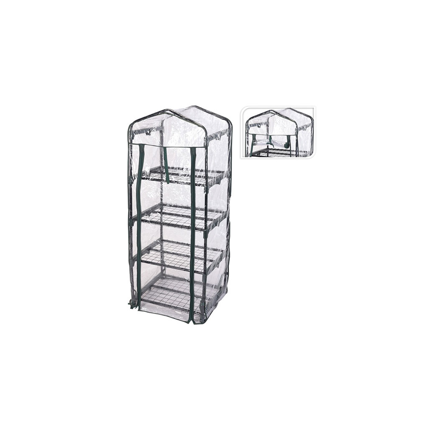Invernadero de 4 alturas con tejado 50x45x130cm (ancho/fondo/alto) protege tus plantas de las heladas tardías de la primavera, del frío nocturno y de cualquier tormenta inesperada. construido con duradero pvc transparente con una estructura de acero, este invernadero es resistente y estable. sus cuatro estantes te proporcionan espacio suficiente para macetas de flores, hierbas aromáticas o especias y semillas de tomatera.