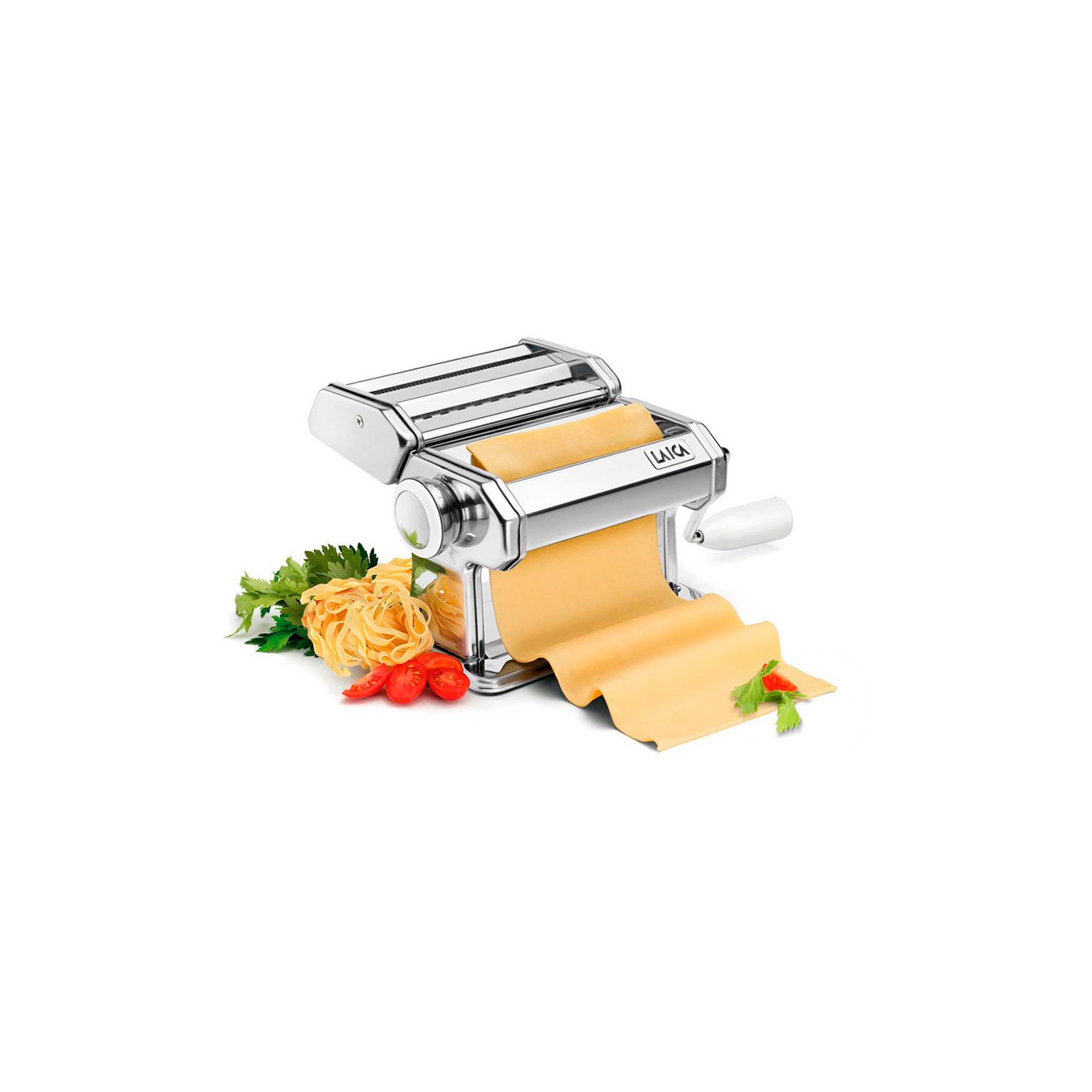 Maquina para hacer pasta pm2000 laica. ideal para amantes de la pasta casera fresca hecha en casa. incluye: 1 maquina para hacer pasta, 1 rodillo de corte doble intercambiable, 1 manivela, 1 abrazadera con tornillo, 2 manuales de instrucciones. con el rodillo incluido se pueden hacer placas para lasaña, fettuccine 6mm y tagliatelle 2mm. apertura minima 0.3mm y apertura máxima 3mm. ancho maximo 150mm. pomo regulador a 7 posiciones. cuerpo de la maquina en acero y rodillos en aluminio. dimensiones: 20.2x19.6x15.2cm. laica