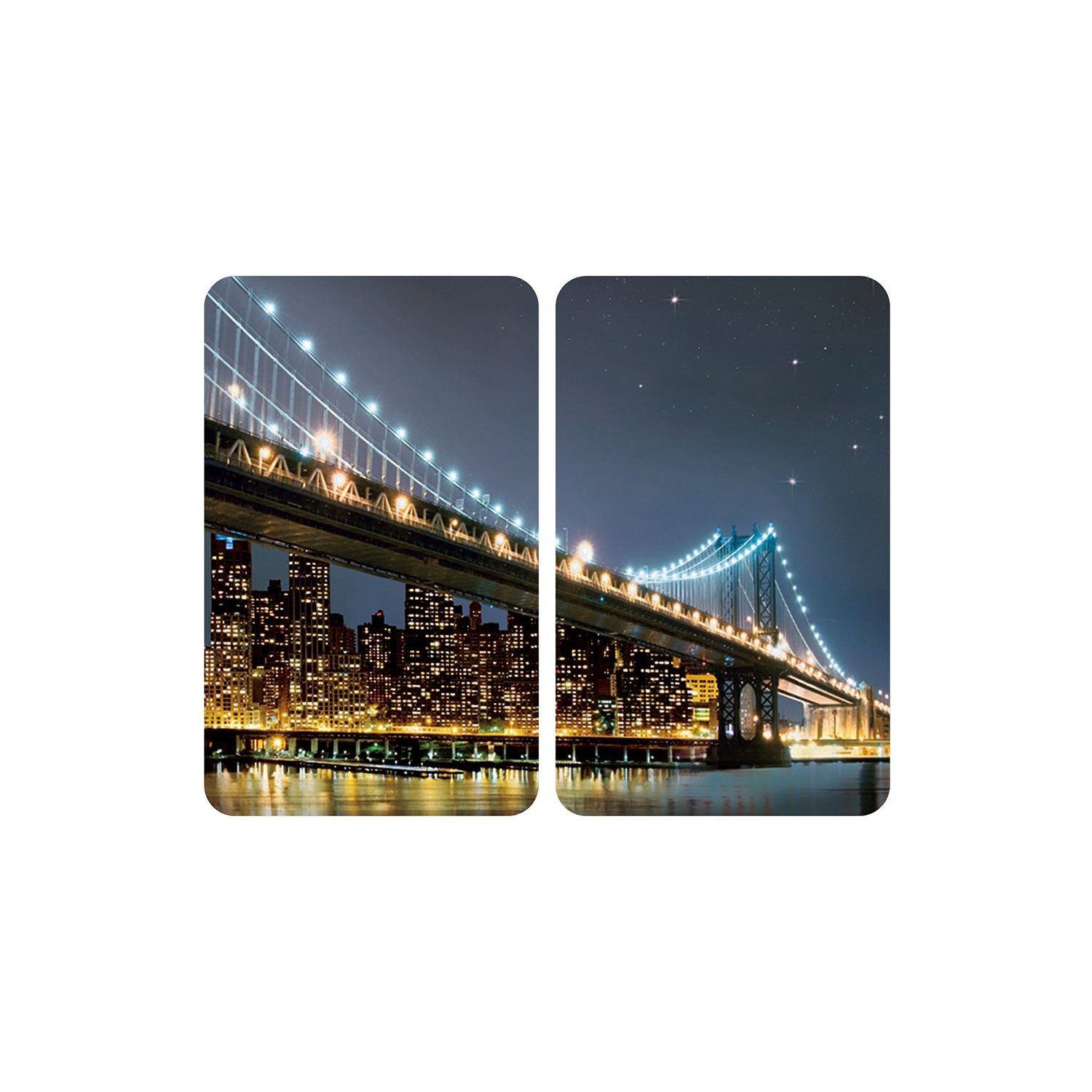 Placas cobertoras de vidrio universales brooklyn bridge 2 unid. vidrio templado de 4mm. con un recubrimiento de protección especial que ofrece seguridad en el caso de utilización extrema. con 4 mini soportes antideslizantes que permiten la utilización en todo tipo de cocinas: vitrocerámicas, eléctricas y de gas, uso prácticamente universal. higiénica, inodora, resistente a los rasguños y golpes. dimensiones: 30x52cm.
