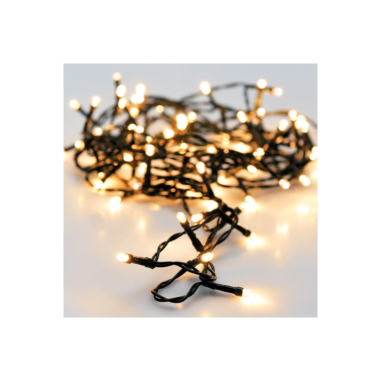 Guirnalda fija 180 leds luz cálida, 220 - 240 v 50/60 hz, exterior ip44, cable verde, distancia entre bombillas 7,5 cm, distancia entre la primera bombilla y la última 13,5 m, cable alimentación 3 m, largo total: 16,5 m