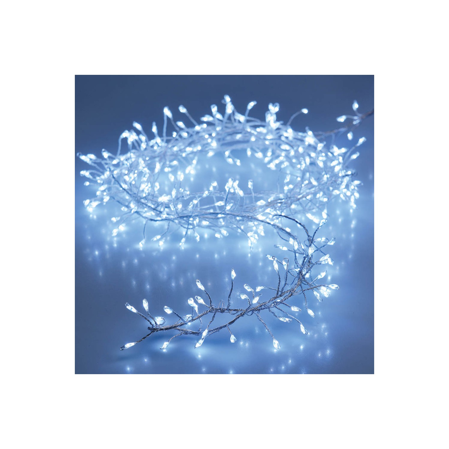 Guirnalda a pilas tipo espino fija 100 leds blanco frio funciona con 3xaa no incluidas cable alimentación 50cm. distancia entre la primera bombilla y la ultima 1m. largo total: 1,5m