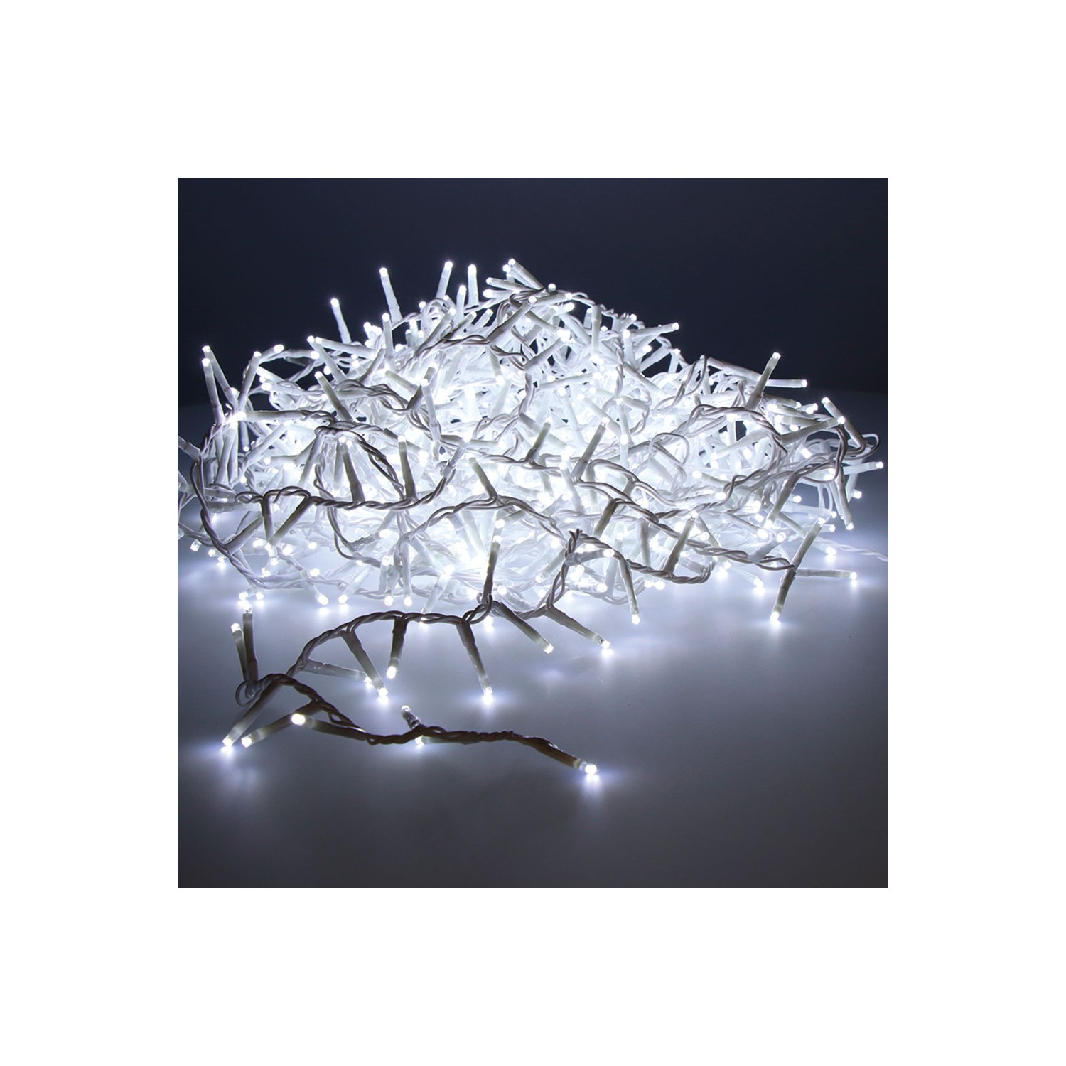 Guirnalda led compact parpadeante exterior blanco frio. cable blanco, temporizador 8 horas. 8 funciones. ip44 500 leds cable alimentacion 5m. distancia entre la primera bombilla y la ultima 11m. largo total: 16m.