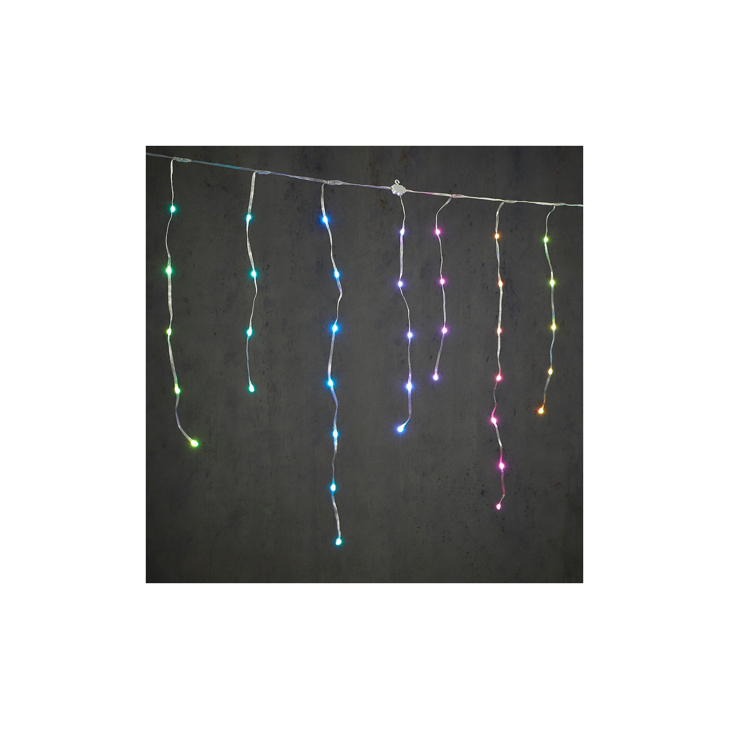 Cortina led efecto carámbano multicolor. medidas: 300x70cm. 150 leds ip44. con control remoto y temporizador.