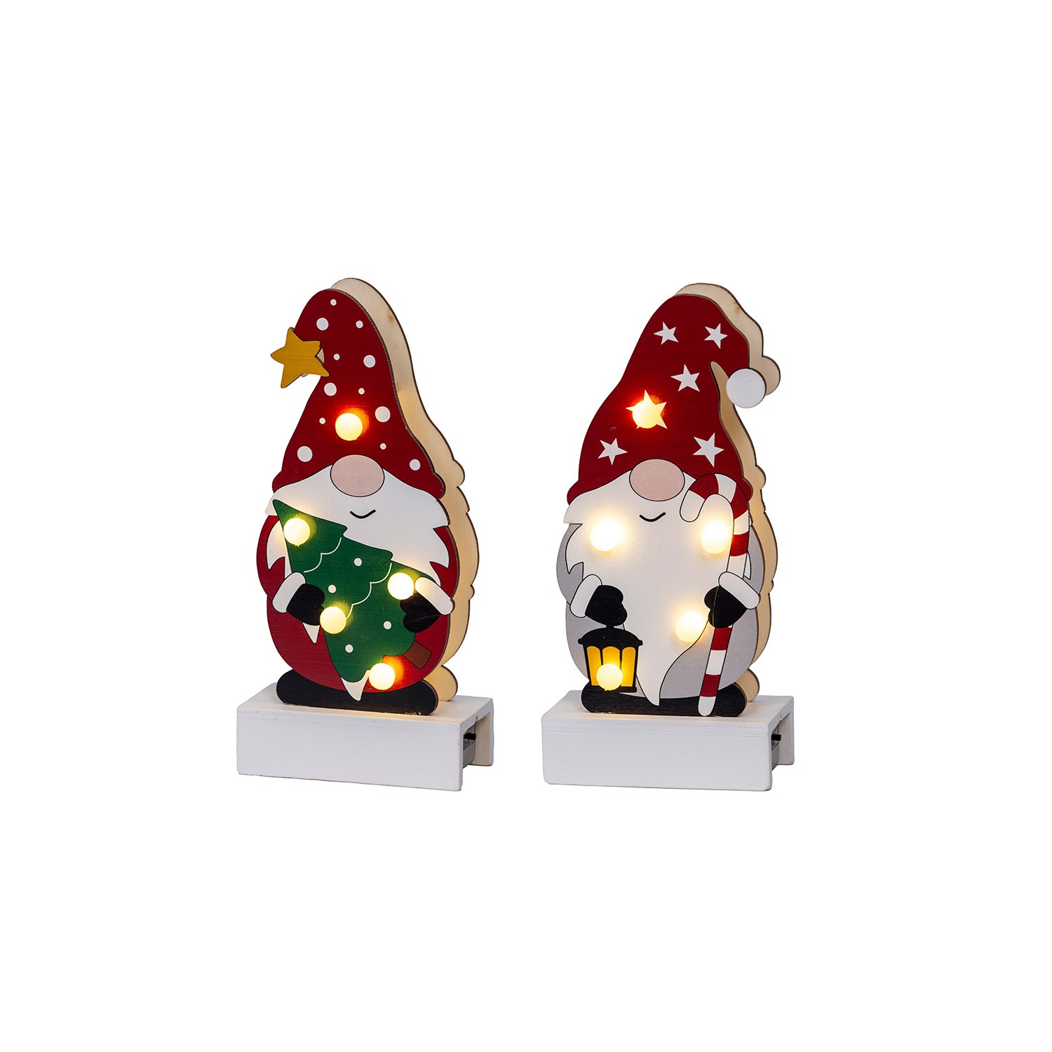 Figura gnomo madera con led 8,50 x 4,50 x 18 cm, modelos variados
