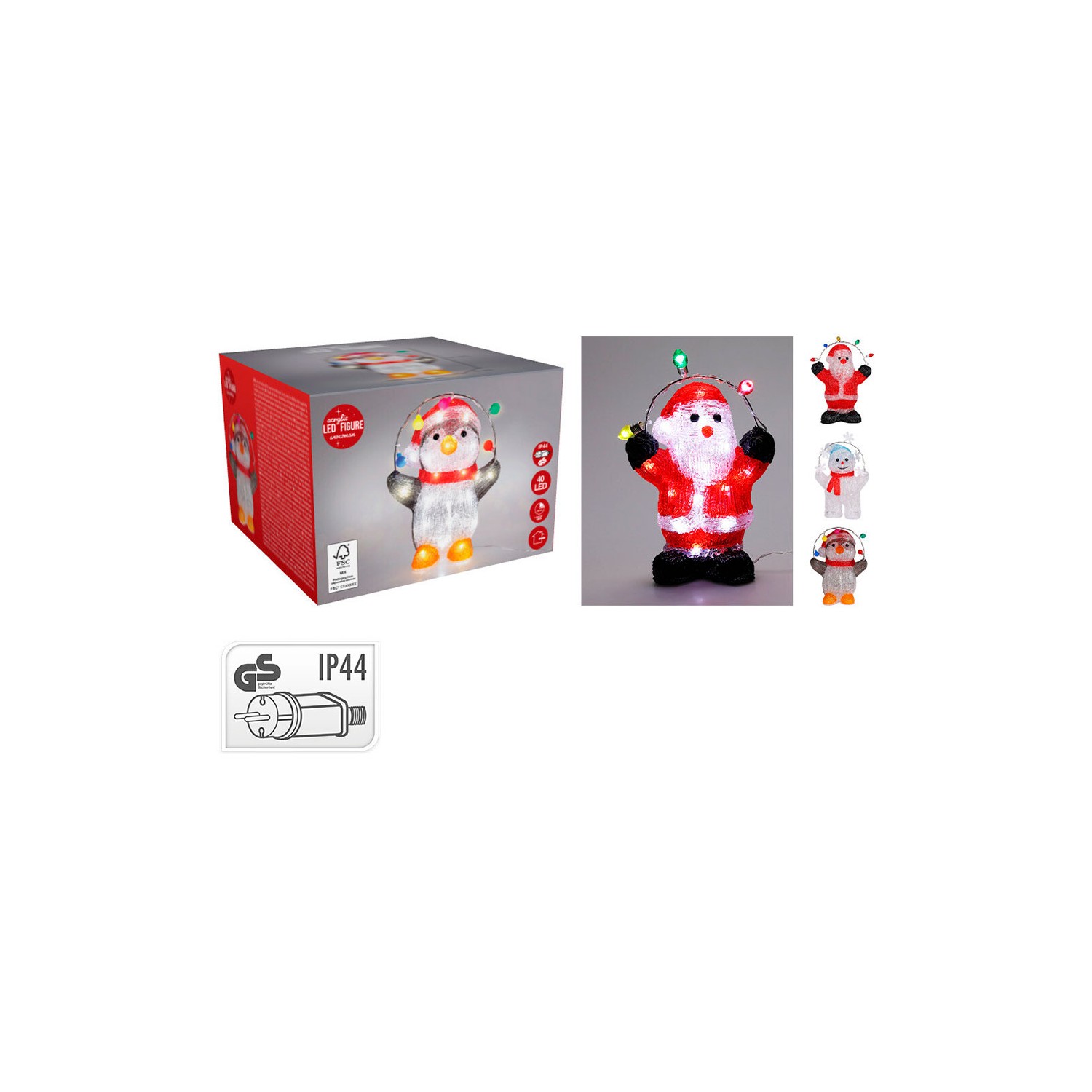Figura de navidad, acrílica, 40 led blanco, adaptador ip44, 4,5v – 1,35w. modelos variados. dimensiones 180 x 170 x 310 mm