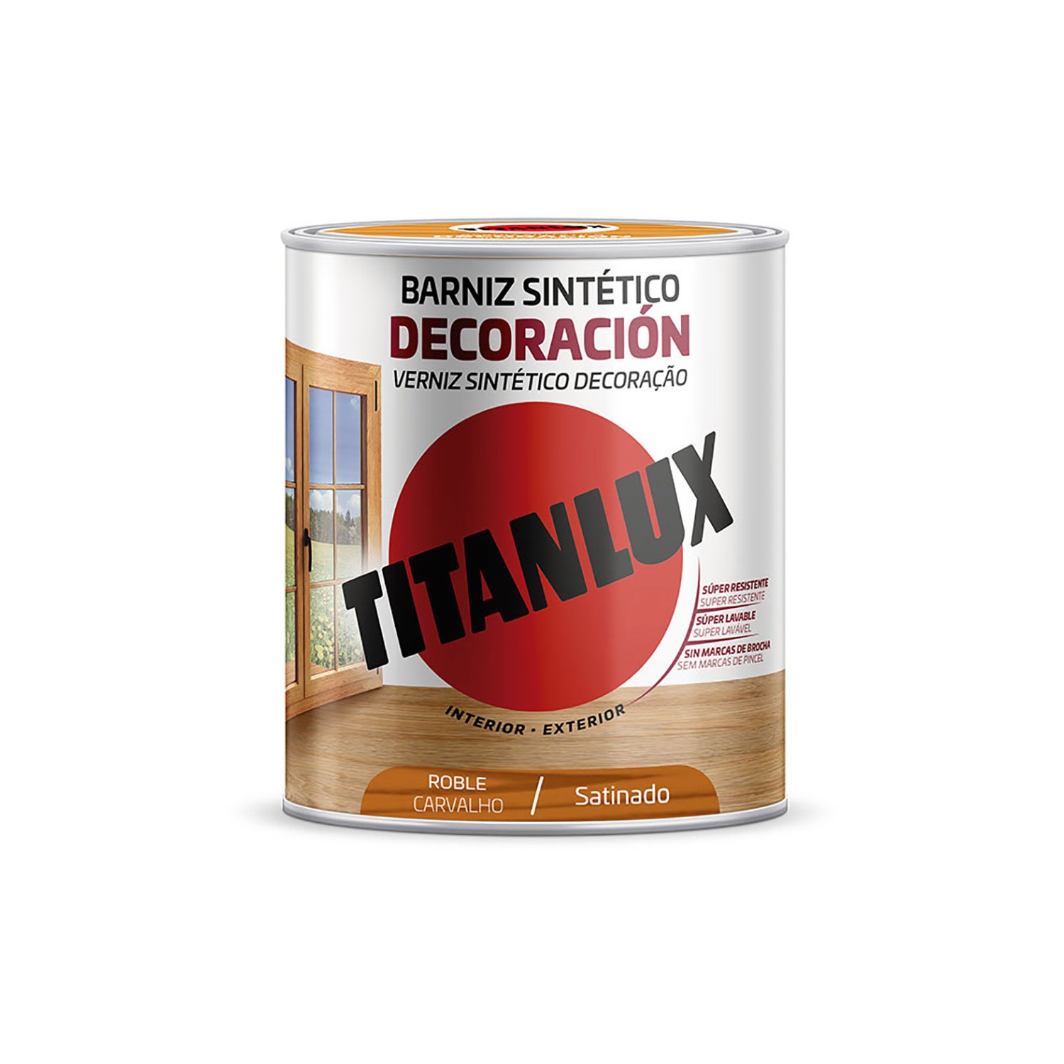 Barniz sintético decoración satinado roble 750 ml. barniz alquídico de alto brillo y elevada dureza, basado en tecnología de altos sólidos, de secado rápido y excepcional transparencia. no altera las tonalidades y contrastes del veteado de la madera. de gran elasticidad, resistencia al rayado y los lavados.