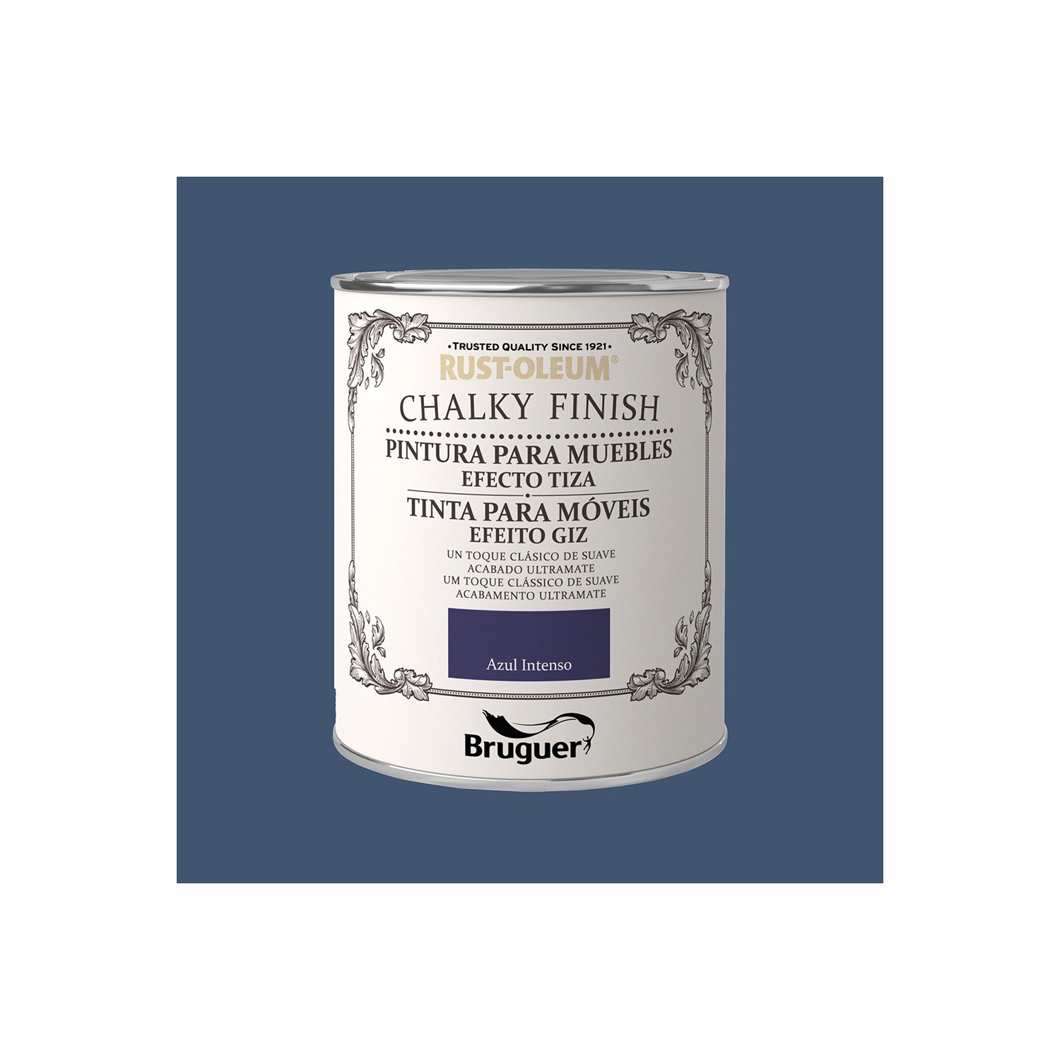 Rust-oleum chalky finish muebles azul intenso 750 ml. pintura al agua efecto tiza, se puede aplicar en todo tipo de superficies como madera, metal, piedra, arcilla, yeso o incluso plástico, con un excelente resultado. te permite customizar desde un jarrón antiguo, una lámpara, un cesto de playa o incluso unos cojines, ya que se puede aplicar también sobre tela.