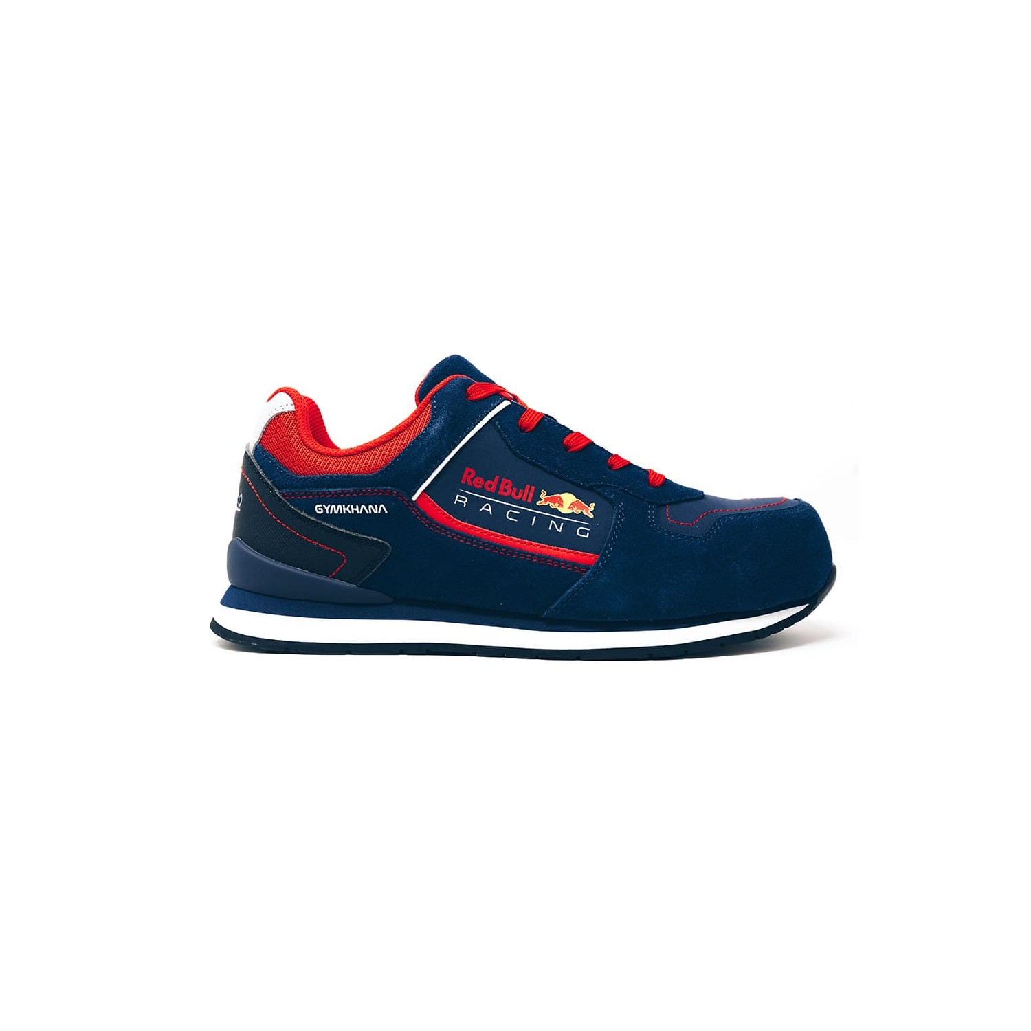 Zapato deportivo gymkhana s3 esd red bull talla-44. zapato deportivo de seguridad 100% con colores especiales red bull racing en piel nobuck y piel velour hidro repelente de alta calidad, entresuela de eva y suela de goma hro con refuerzo de tpu en el talon. perfecto para trabajar con estilo motorsport.""