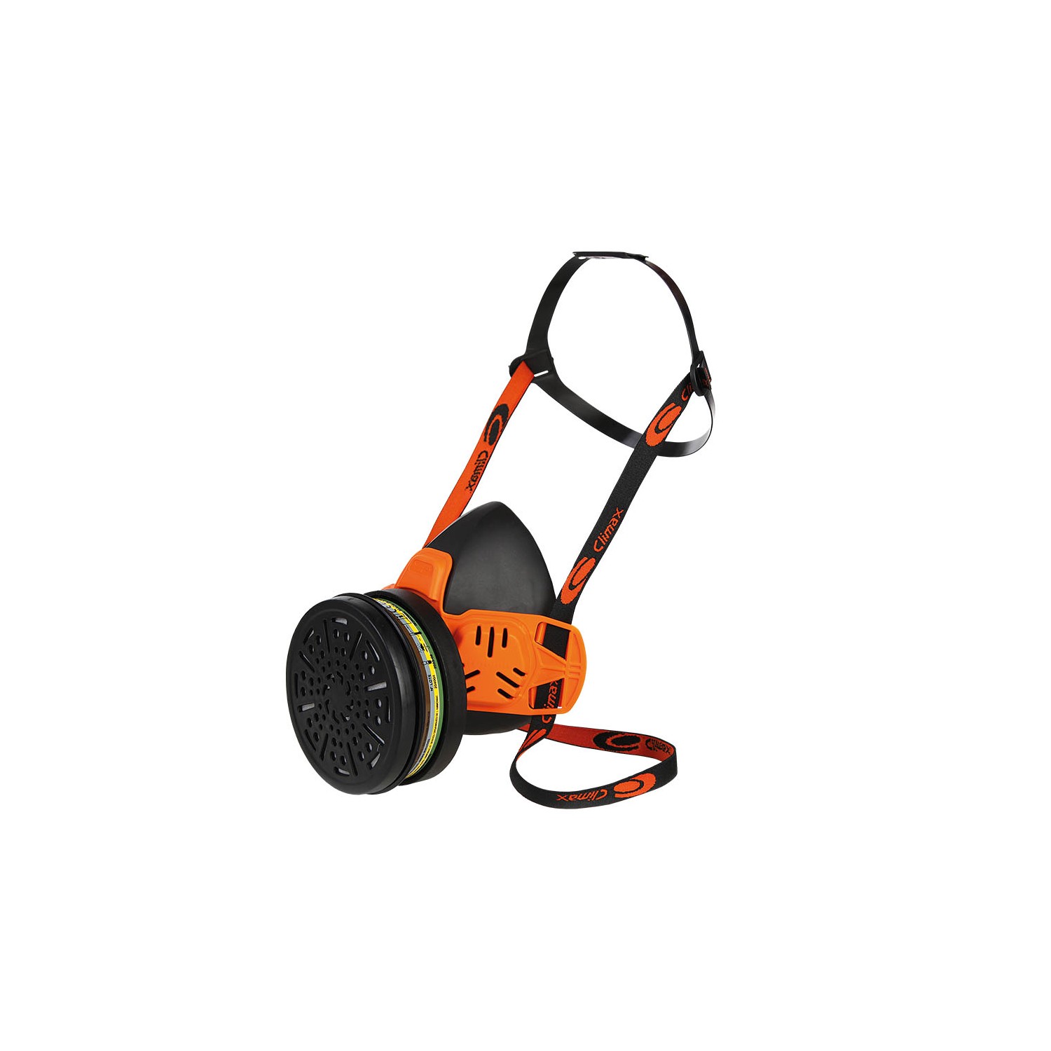 Media máscara fabricada en siliciona muy flexible. reutilizable. contiene dos filtros laterales que proporcionan menor resistencia a la respiración. fácil mantenimiento. con arnés de cabeza diseñado para ofrecer un ajuste óptimo y una buena estabilidad.su diseño permite colgar la mascarilla del cuello de manera cómoda para momentos en los que no se requiera protección. compatible con filtros climax 755 y 756 para gases, vapores, partículas y combinados.conexión filtro: roscafiltros: 755/756 material: silicona. factor de protección nominal (fp) norma: en 140:1998