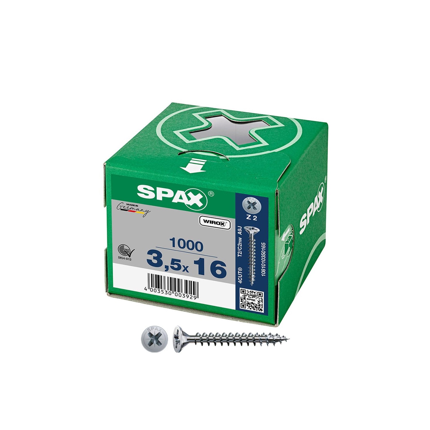 Caja 1000 unidades tornillo universal cabeza plana wirox 3,5x16mm rosca completa, ranura en cruz z2, 4cut - 1081010350165