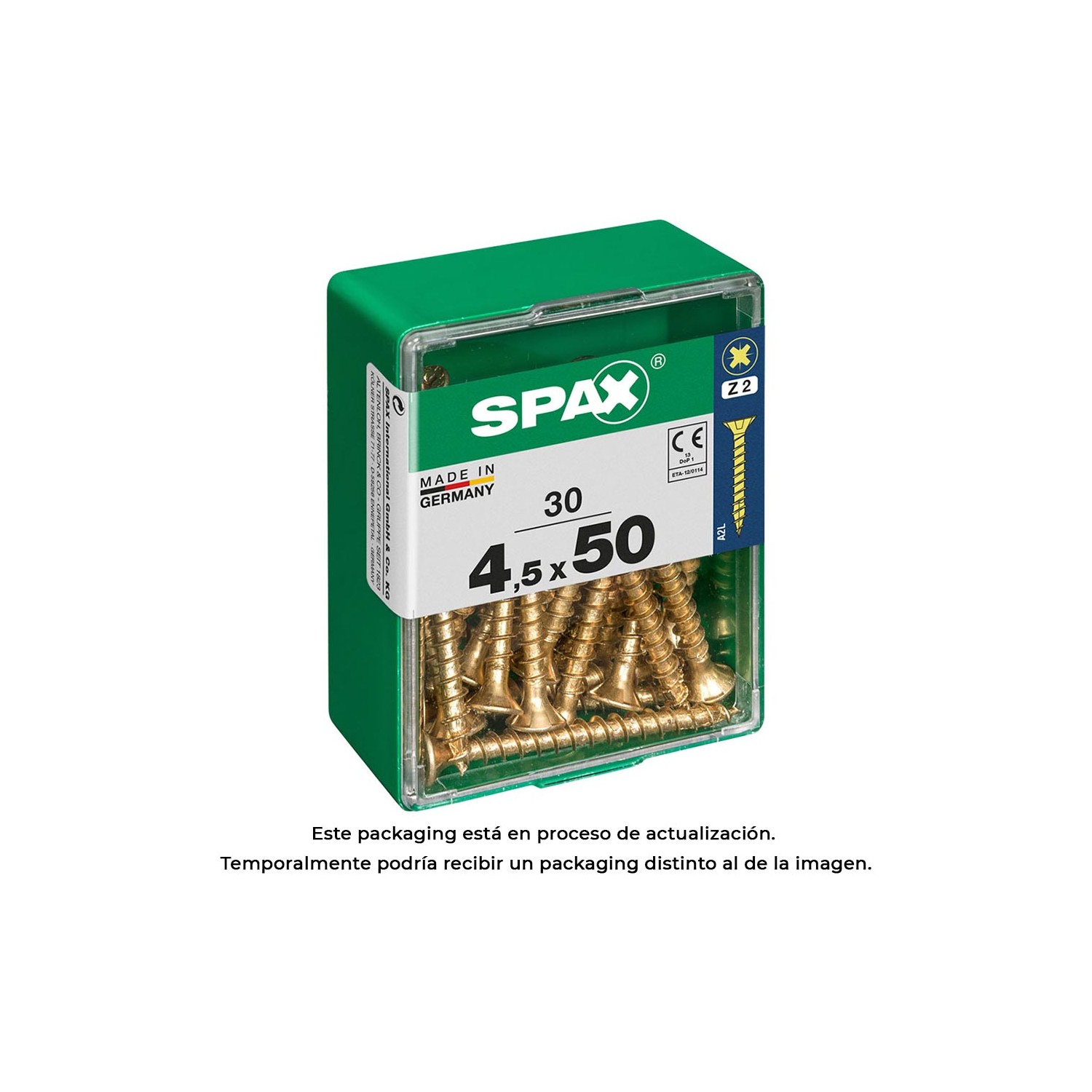 Caja 30 unid. tornillo madera cabeza plana yellox 4,5x50mm spax. tornillo universal, rosca completa, cabeza plana, ranura en cruz z2, 4cut, yellox - 4081020450502